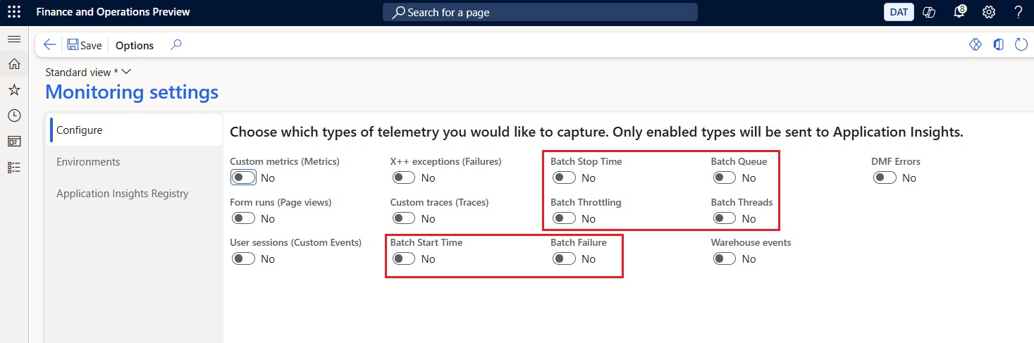 The monitoring and telemetry capabilities in Dynamics 365 ERP enable customers to send application telemetry to Azure Application Insights for analysis and alerting. The recent expansion of telemetry signals for batch workloads builds on this foundation by adding behavioral data specifically for batch execution patterns.