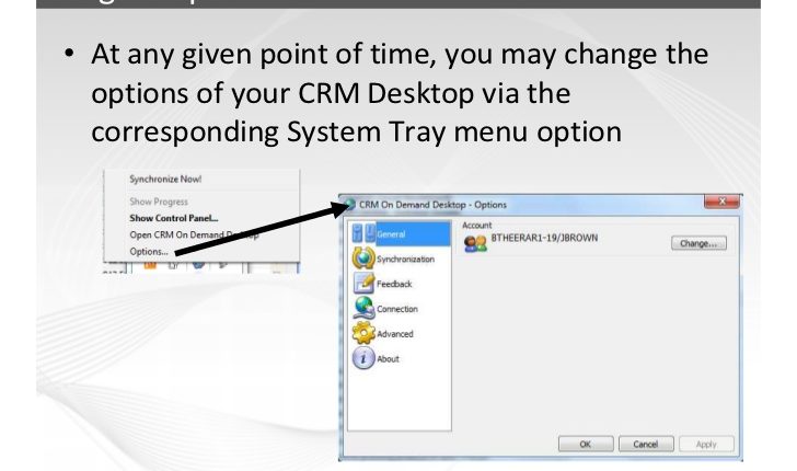 Introducing Oracle CRM On Demand Desktop Microsoft CRM On Aug 10, 2011 Learn how sales reps can can rapidly and easily increase their productivity with the full functionality of Oracle CRM On Demand, right within Microsoft Outlook. CRMcrm on demandcrm on demand desktopMicrosoft Outlookoracleoracle crm on demandOutlooksaas Share FacebookTwitterReddItWhatsAppPinterestEmailLinkedinTumblrStumbleUponVKDiggViberPrint