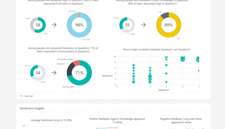 - More intelligent insights. Take a better pulse of your workforce and your customers. Microsoft Forms Pro includes AI-powered insights to analyze the survey and automatically identify data correlations, as well as detect sentiment from free-text comments so you can quickly understand how people think and feel about your company, brand, and products.