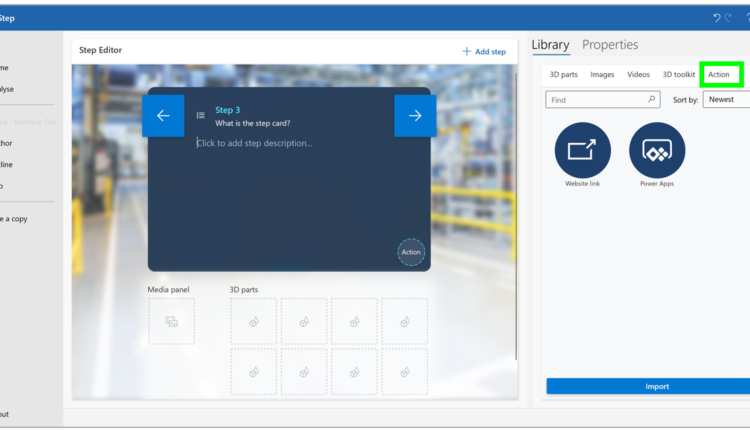 Additionally, using Dynamics 365 Guides PC authoring, you can add a website link or directly link to Power Apps apps in your guides, making the opportunities endless for content linking and quick access to resources such as reference manuals, interactive quizzes, or parts re-ordering systems, or an app that provides the latest status of IoT sensors. This feature enables authors to create a seamless workflow for operators so that there is no need to switch from the workflow to access outside documentation as the information is displayed seamlessly in the line of sight.