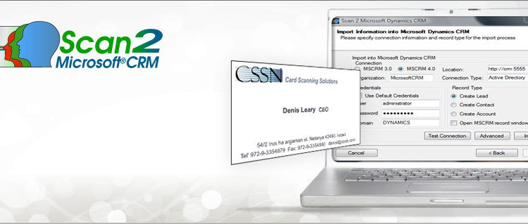 Scan2MSCRM is a business card scanner that scans business cards and inputs both their textual data and image into a new contact record, lead record or account record in your Microsoft CRM application. Certified for Microsoft CRM 4.0 by Microsoft