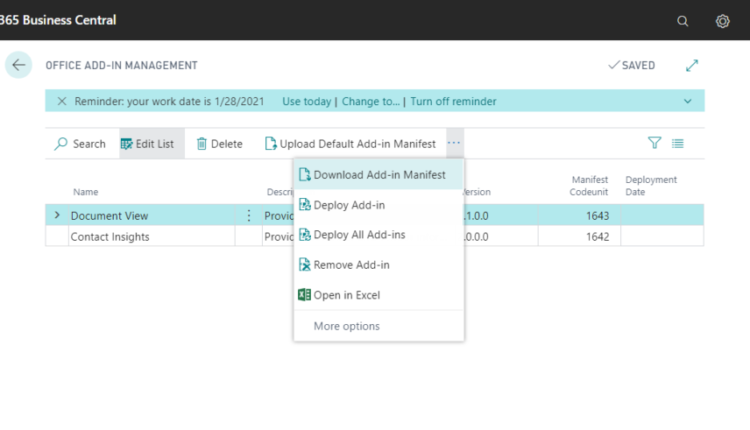 The first step is to get to the Office Add-in Management page in Business Central and download the Document View manifest file.